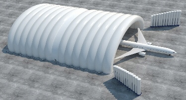첨부 사진은 격납고에 사용된 실제 에어돔 전경으로 개요는 아래와 같습니다.